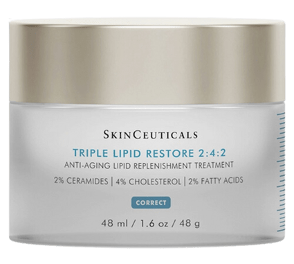 Another superior moisturiser than has a loyal following, it slips onto the skin like a balm and melts in like a dream thanks to the cocktail of fatty acids, ceramides, and natural cholesterol. Skinceuticals Triple Lipid Restore 2:4:2, $215